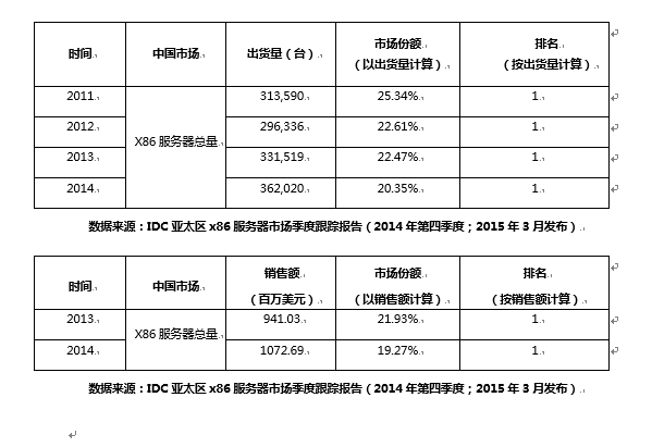 IDC: 戴尔中国x86服务器2011-2014出货量连续四年第一!